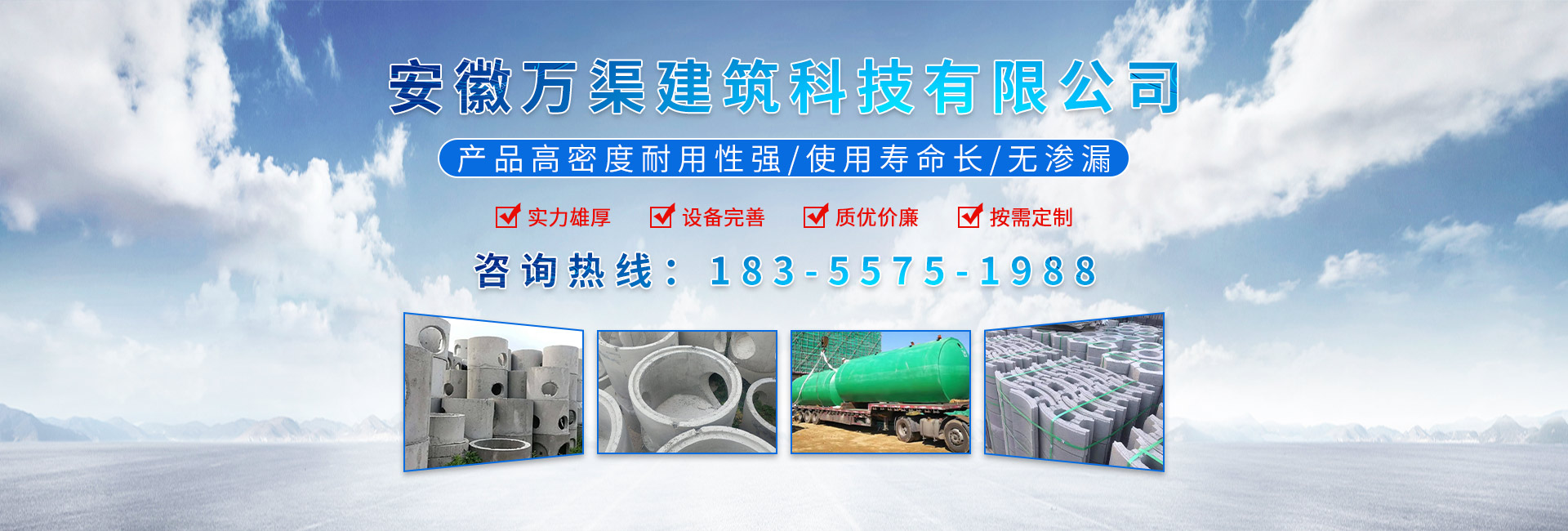 黃山市萬順建筑科技有限公司是集研發,生產制造,市場推廣為一體的綜合性企業。公司主要經營環保型預制鋼筋混凝土裝配式組合型檢查井和蓄水裝置等城建配套產品。產品生產過程采用獨特的生產工藝,機械化流水作業。產品大規模生產,生產效率高,耗能少,成本低,產品使用壽命長、免維護、無滲漏、無污染,符合“綠色環保,低碳節能”的發展要求,是傳統磚砌井池的理想替代產品。